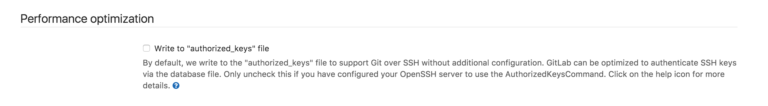By default, GitLab manages an authorized_keys file, which contains all the
