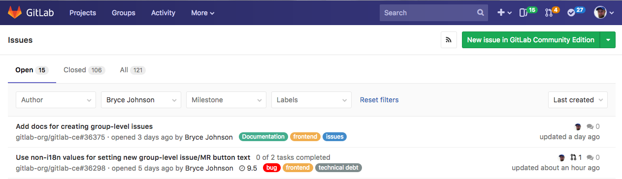 Please read through the GitLab Issue Documentation for an overview on GitLab Issues.