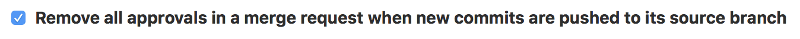 If approvals are activated at the project level, you can choose whether all approvals on a merge request are removed when new commits are pushed to the source branch of the merge request: