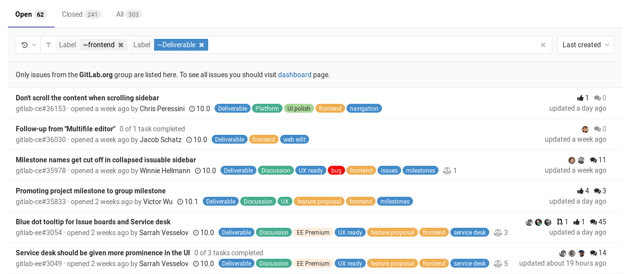 Similar to Issues and merge requests per project, you can also search for issues within a group. Navigate to a group's Issues tab and query search results in the same way as you do for projects.